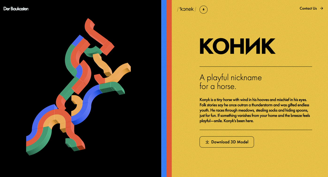 Der Baukasten was never meant to be a static object. The scroll had to build the creature in real time. Each click, a snap. Each section, a puzzle piece. It needed to feel physical—not in metaphor, but in muscle memory.