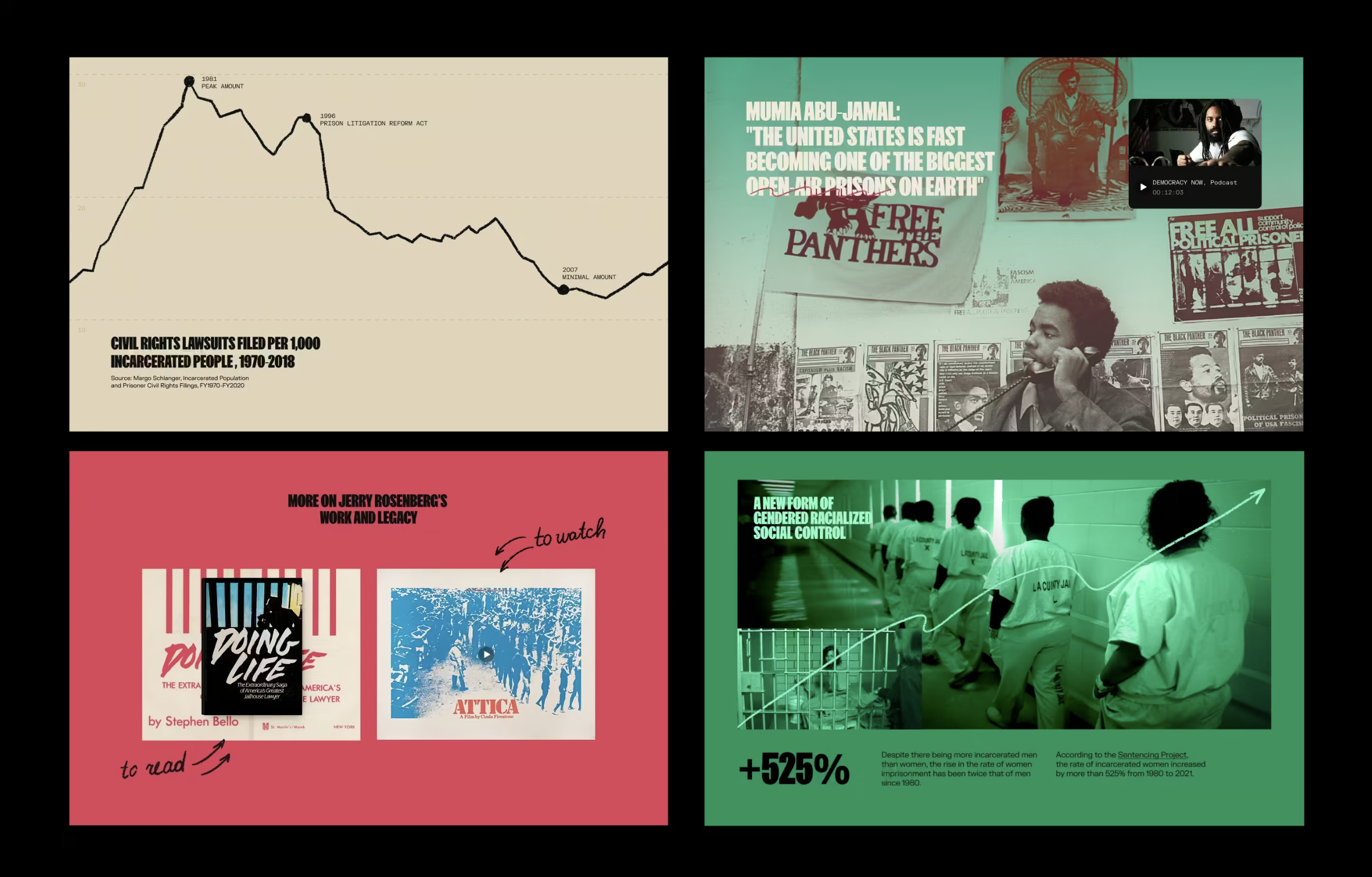 • Authentic texture: We worked with handwritten annotations, scanned prison mail, and real case excerpts to make sure every visual felt human, not generic.