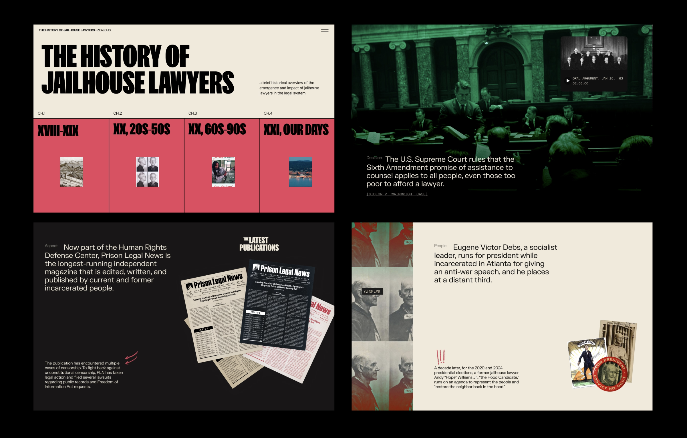 The campaign had many layers—policy, memory, movement—and we were brought in to shape one of its core pieces: an interactive visual timeline website that would trace the history, voices, and impact of jailhouse lawyers over the years.