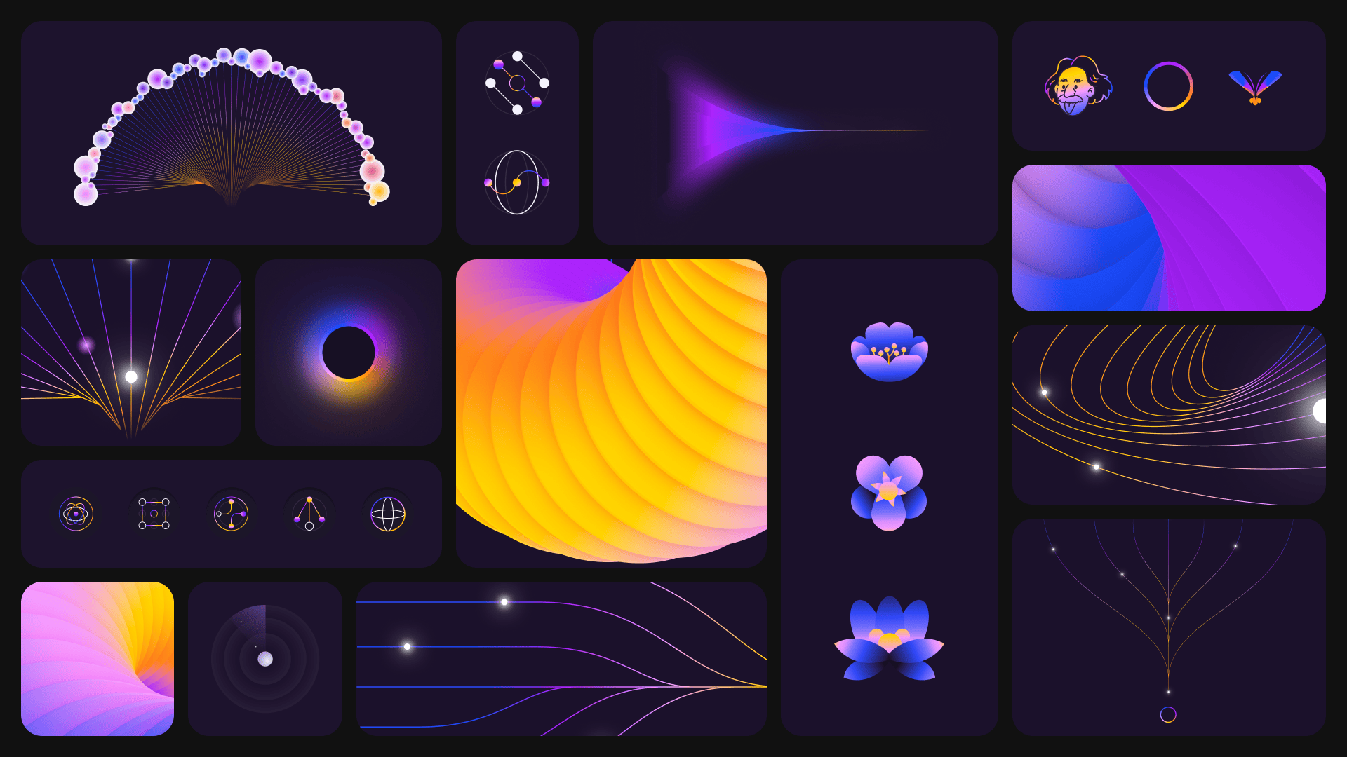 The client sent over purple palettes. References to the Fibonacci spiral. Even ideas around mycelium and organic networks. The project kept pointing us toward softness—circles, rings, flow. The circle was in the center of it all—not just a shape, but a system. An eternal one.