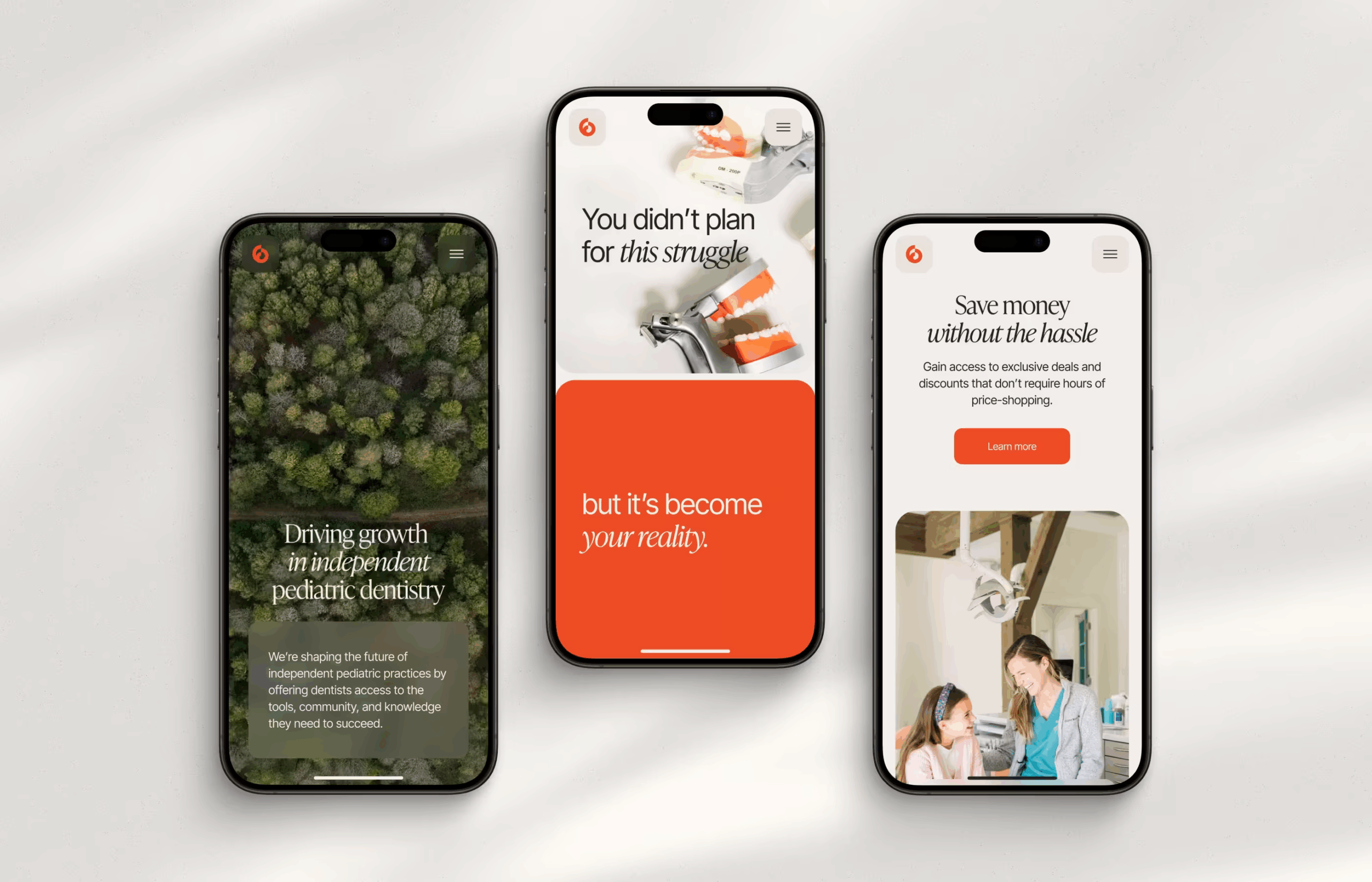 Fireside is the first membership-based community platform for pediatric dentists. It offers educational resources, expert support, and vendor discounts—practical tools that help professionals grow without unnecessary friction. But beyond that functionality, there was something more subtle: an identity built around warmth.